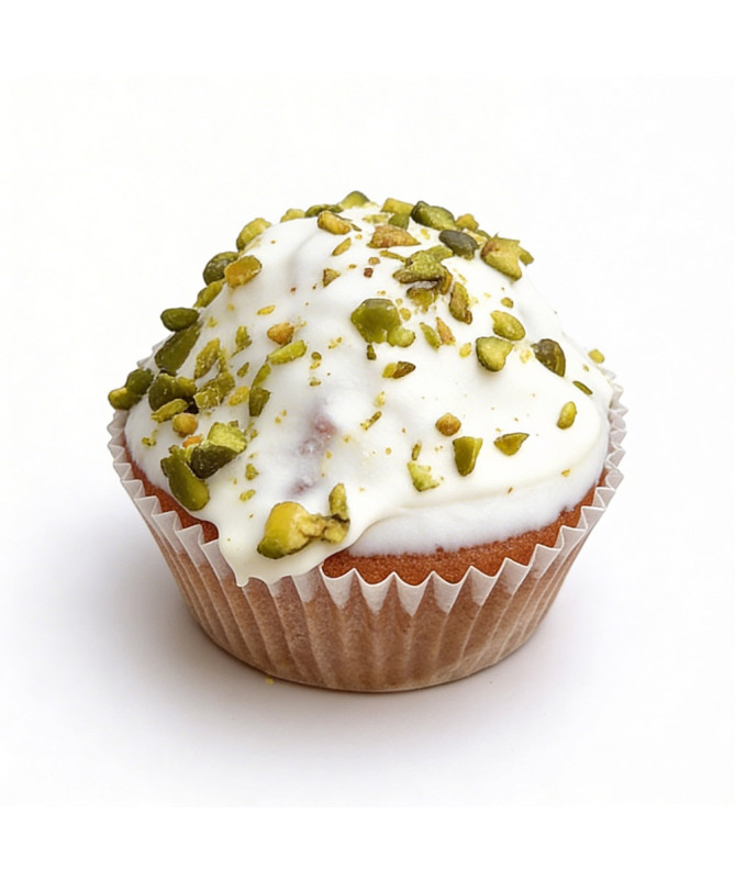 Harina (harina de trigo, cisteína, ácido ascórbico, E341, E472e), azúcar, aceite de oliva virgen extra, pistachos, huevo líquido, leche entera, Chocolate blanco(azúcar, grasa vegetal fraccionada y totalmente hidrogenada (palmiste), suero de leche en polvo, leche entera en polvo, emulgente (E-492, E-322 lecitina de girasol, E-472c) y aromas), zumo naranja, bicarbonato sódico, impulsor [gasificante (E500ii, E450i), regulador de pH (E516), anti aglomerante (E170) y almidón de maíz)] y aroma natural de limón.